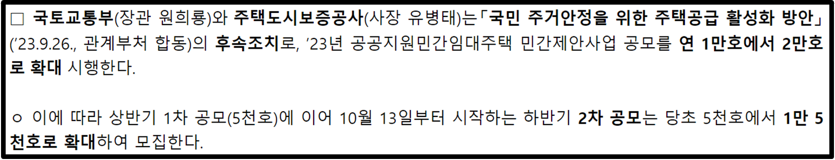 2023 공공지원 민간임대주택 공모 1만 호 → 2만 호 확대