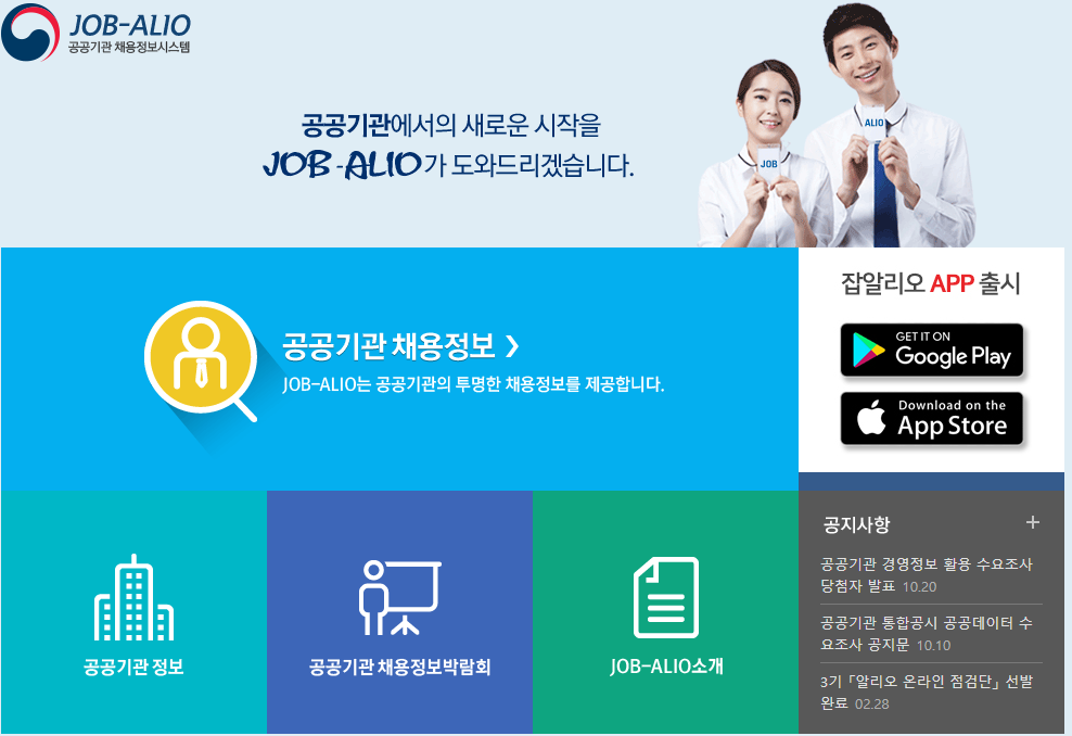 ☛ 공공기관채용정보 잡알리오 https://job.alio.go.kr/main.do