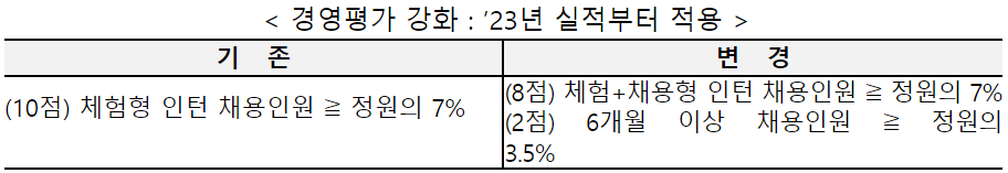 ◆ 6개월 인턴 채용평가제도 신설(2023년 실적부터 즉시 적용)