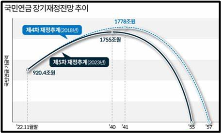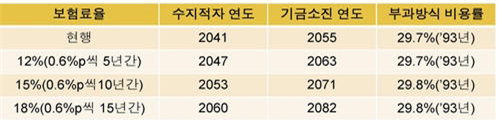 - 각각 2057년, 2060년으로 기금소진 시점이 늦춰진다는 견해