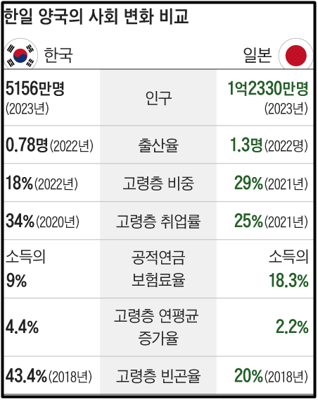 ◆ 한일 양국의 사회변화 비교와 고령인구 현황
