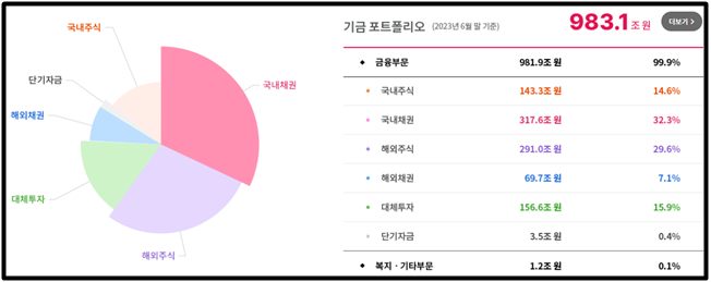 ■ 우리나라 국민연금 기금 현황(2023년 6월 말 기준)