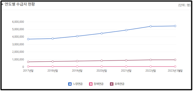 - 연금 수령액 역시 고령화. 저출산 여파로 계속 감소