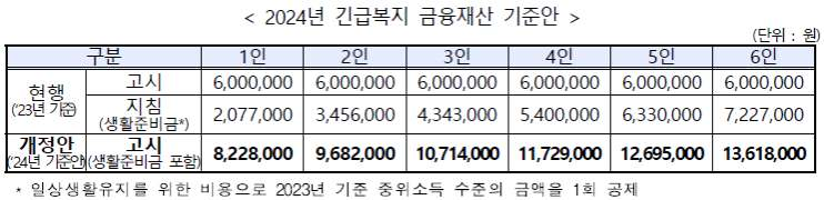 ▶ 2024년 긴급복지 금융재산 기준안