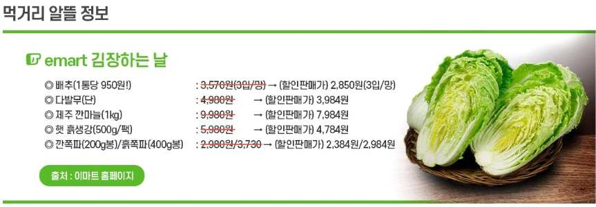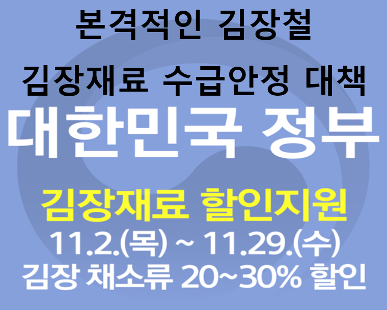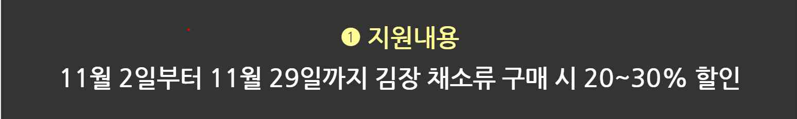 ▷ 지원내용 : 11월 2일부터 11월 29일까지, 김장 채소류 구매 시 20~30% 할인