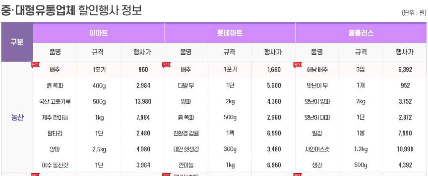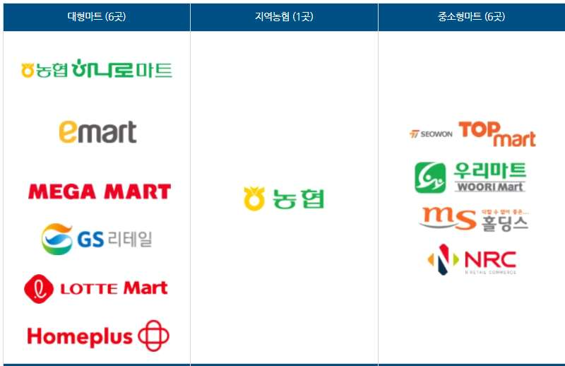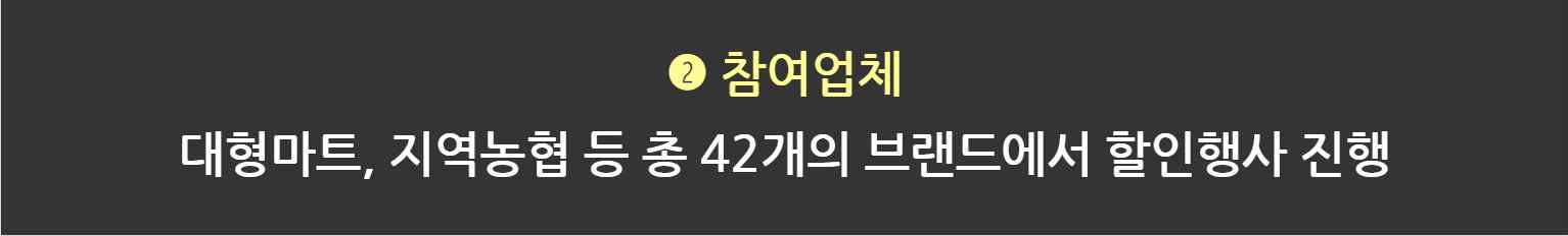 ▷ 참여업체 : 대형마트, 지역농협 등 총 42개의 브랜드에서 할인행사 진행