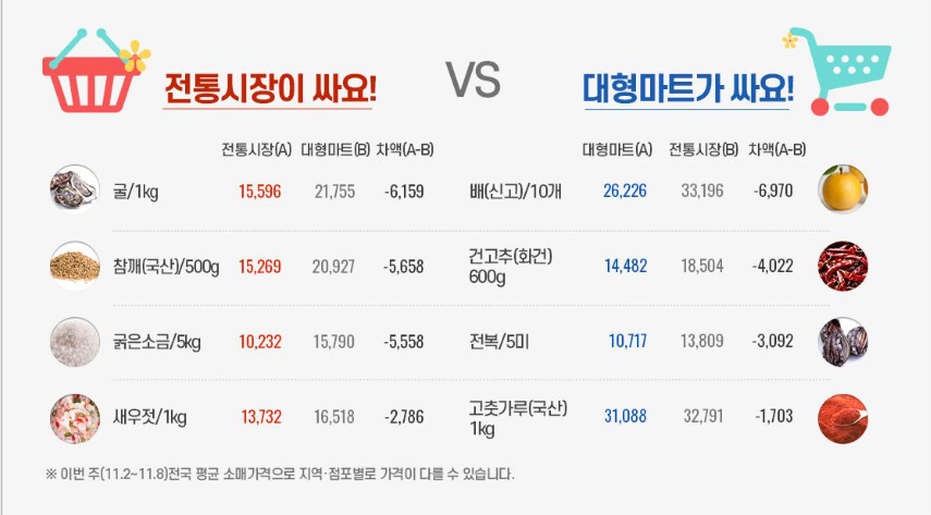 - 조사처 : 전국 23개 지역, 50개소(대형마트 34개소, 전통시장 16개소)