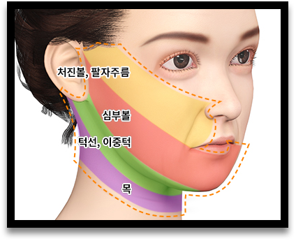 ➽ 안면 거상술 : 얼굴 전체의 주름을 개선하기 위하여, 얼굴의 피부를 귀 뒤쪽으로 당기는 성형술