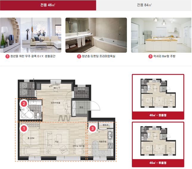 - 선택형의 전용면적 기준 60㎡ 이하 추정임대료는, 월 50만~60만 원대로 산출
