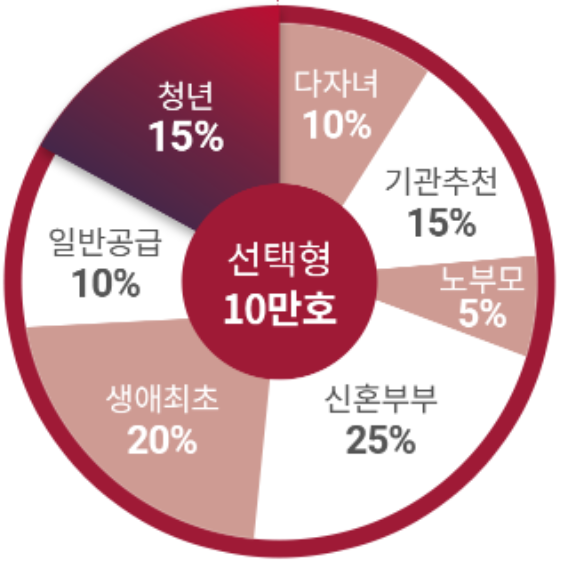 - 청년 특별공급 : 만 19~39세 미혼, 과거에 주택을 소유한 적이 없는 무주택자일 경우, 부모가 유주택자여도 신청 가능