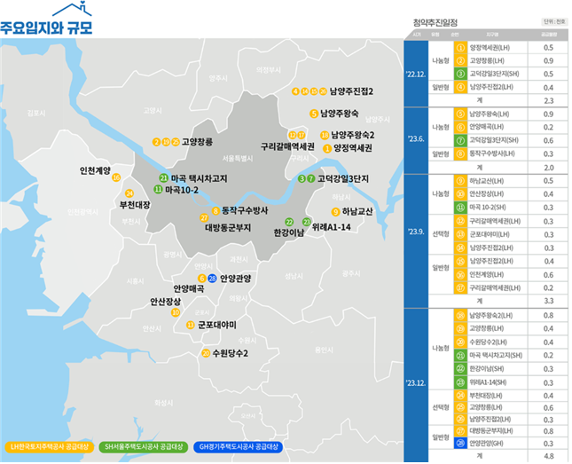 2) 공급 일정은 22일 일반형(구리갈매역세권, 인천계양, 남양주진접 2)을 시작
