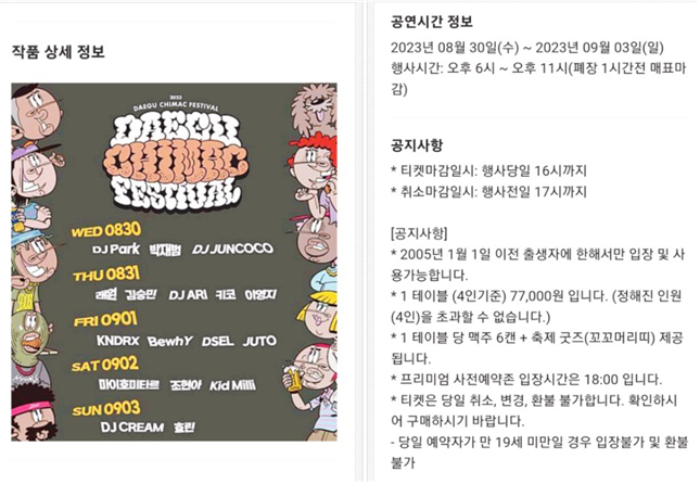 - 대구치맥페스티벌 사전 예약존은 티켓링크에서 예매