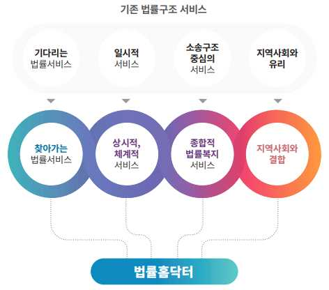이렇듯 법적 도움을 받기 어려운 분들을 위해 찾아가는 법률서비스 '법률홈닥터'를 운영하고 있습니다. '법률홈닥터'에 대한 모든 것을 대한민국 정부에서 자세히 알려드립니다.