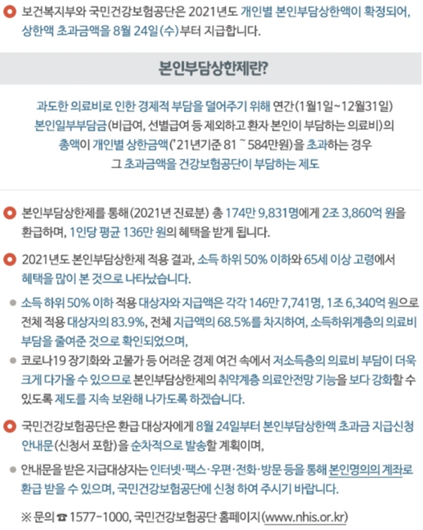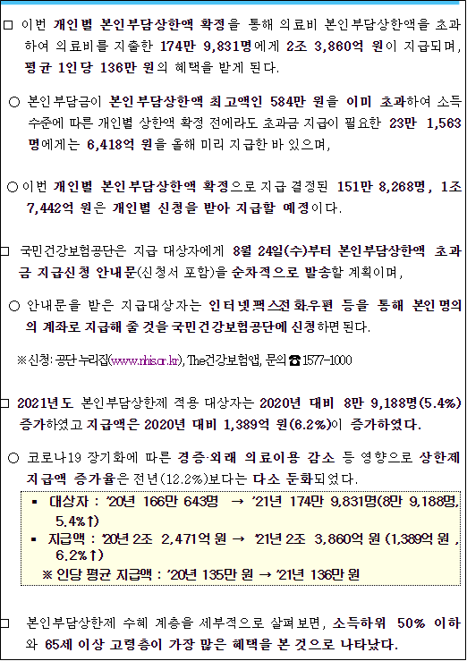 ■ '21년도 본인 부담 상한액 확정, 24일부터 상한 초과금 지급 절차 개시