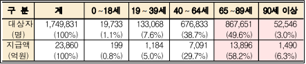 - 100세 이상 최 고령층 1,379명에게는 40억 원 지급(인당 290만 원)