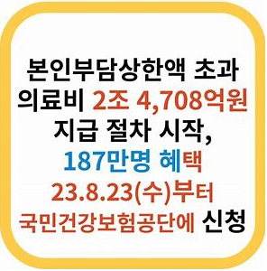 - 고액, 중증질환자의 과다한 의료비 지출로 인한 가계의 경제적 부담을 덜어주기 위해, 일정 기준을 넘으면 그 차액을 돌려주는 제도