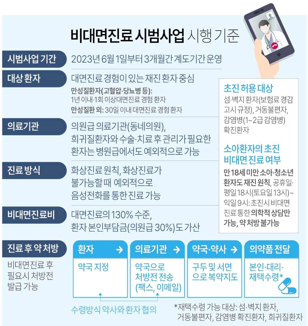 지난 6월 1일부터 한시적 비대면 진료를 종료하고 비대면 진료 시범사업에 돌입했는데요. 시범사업 6개월을 맞아 현장 의견을 바탕으로 「비대면 진료 시범사업 자문단」 논의와 공청회 등을 거쳐, 국민의 의료 접근성 강화와 의료진 판단을 존중하는 방향성으로 보완했습니다.