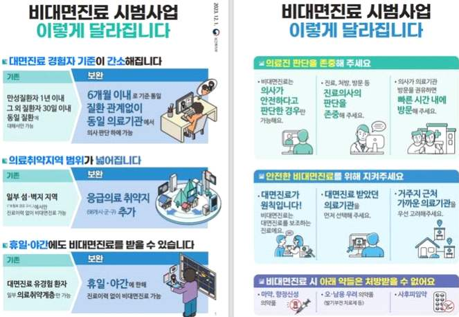 - 2023년 12월 15일부터 비대면 진료의 예외적 허용 대상인 의료취약지의 범위에 응급의료 취약지역을 추가해 의료 접근성을 개선