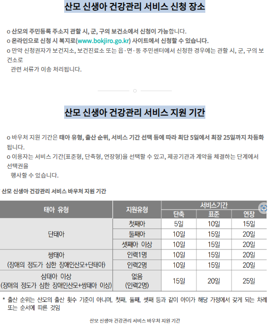 - 40일 이용 희망 가정에 한하여 '출산일로부터 60일 이내' → '출산일로부터 80일 이내'로 연장