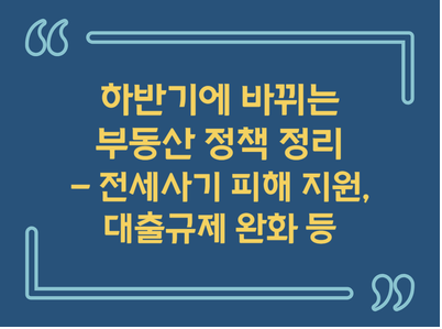 정부의 2023년 하반기 경제정책 중, 바뀌는 부동산 정책 중 핵심적인 내용은, 전세 사기 피해자 지원 및 예방 그리고 대출 규제 완화 두 가지에 초점이 맞추어져 있는 것 같습니다.