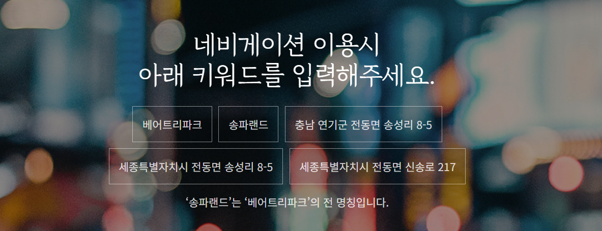 - 자세한 교통편 안내(자가용, 기차, 버스 공통 안내) : http://beartreepark.com/m23.php