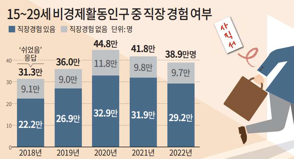 - 취업자 · 실업자가 아닌 비경제활동인구 중, 중대한 질병이나 장애는 없지만 쉬고 있는 자들을 의미