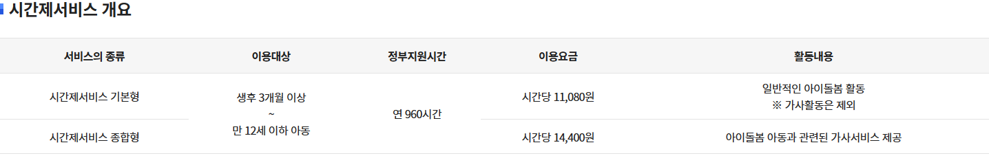 ☛ 시간제서비스 바로가기 https://idolbom.go.kr/front/srvcGuide/prttm
