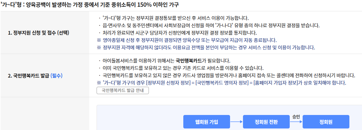 ① 사전 준비 : 아이돌봄 웹회원 가입 및 정부지원 신청자격 확인
