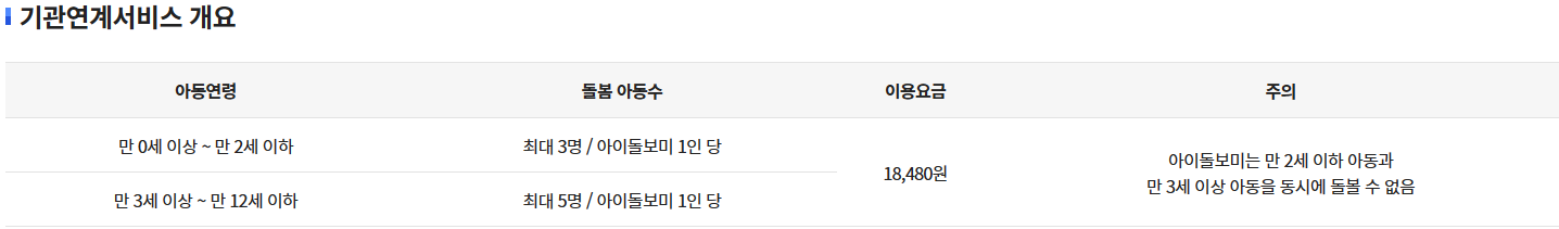 ※ 상세한 사항을 알고 싶으시면, 아이돌봄서비스 홈페이지(https://idolbom.go.kr/front/)에서 확인 요함
