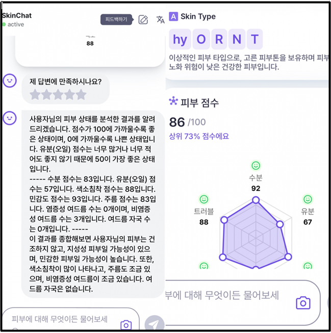 둘째, 스킨챗 AI가 피부 상태를 파악하여