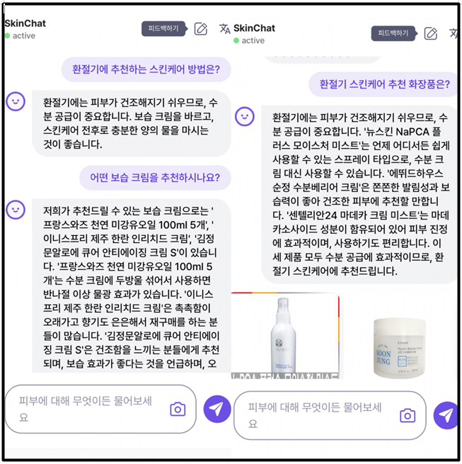 3) 특히 노화나 피부질환, 화장품 사용법 등에 대한 고객 문의를, 사람 대신 자동화 처리하는 능력 보유