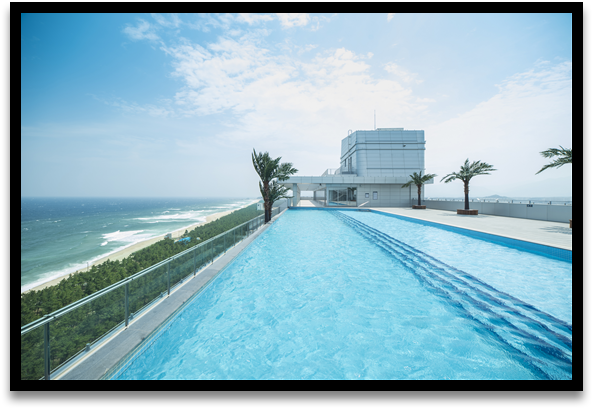 호텔의 최상층에는 동해의 전망과 자연 채광을 만끽할 수 있는 2개의 인피니티 풀이 있습니다.
