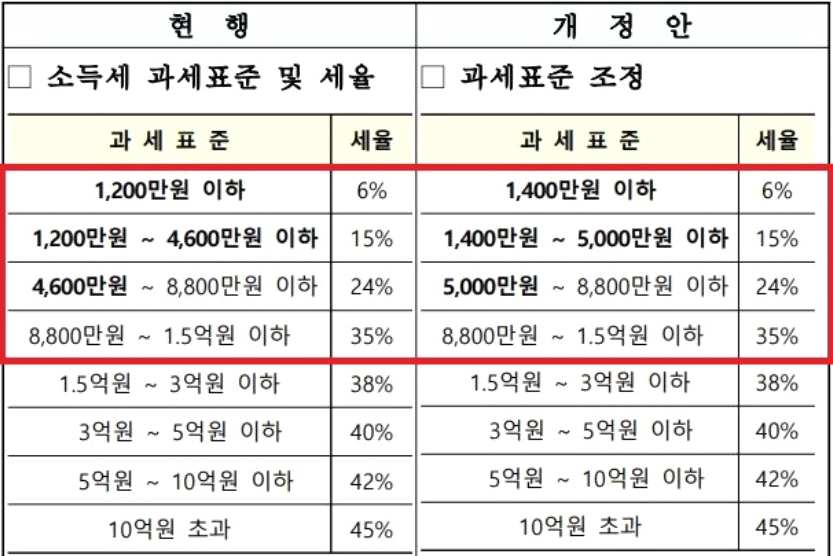 2. 소득세 과세 표준구간 조정