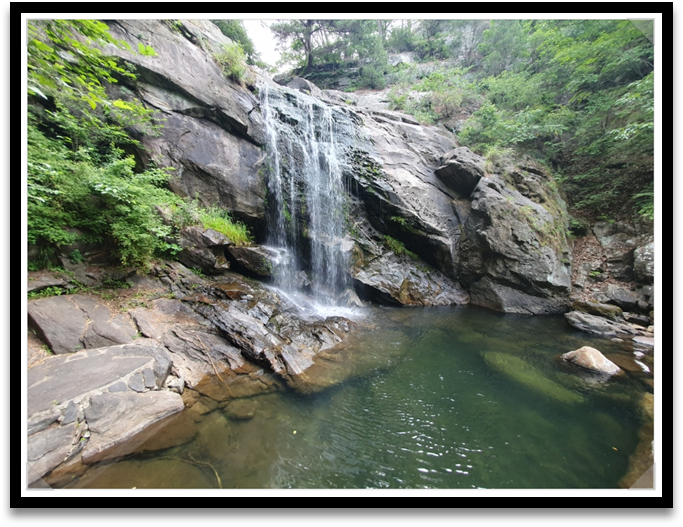 계곡의 물줄기가 떨어지는 곳에는, 어른 10여 명 정도가 설 수 있는 넓은 암반이 형성되어 있습니다.