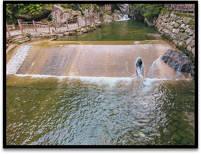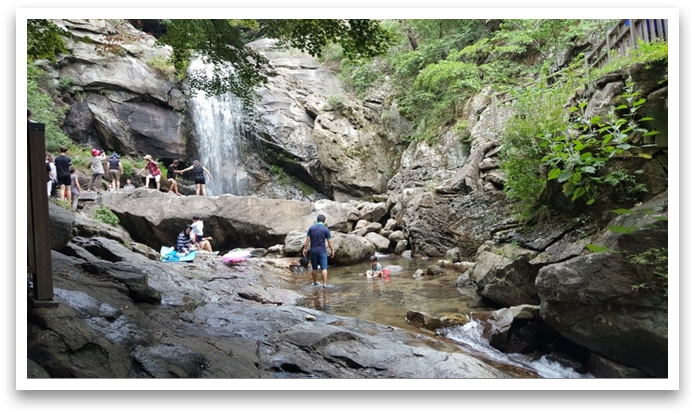 장맛비로 폭포의 아래쪽에도 물놀이를 할 수 있을 만큼 수량이 풍부해졌다네요.