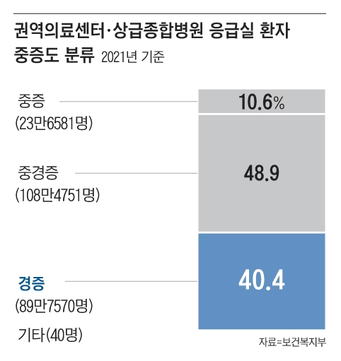- 경증 환자 지역 응급의료기관으로 , 중증 응급환자 지역 · 권역응급의료센터로 이송 등 응급 의료 기관별 역할 분담 통해 센터급 이상 응급실의 과밀화 해소 추진