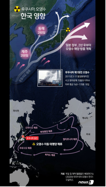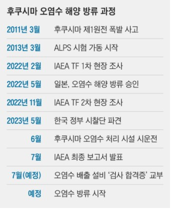 - 급기야 일본 정부는 2023년 후쿠시마 원전의 오염수 방류를 공식 발표