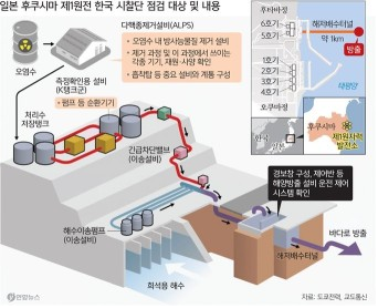 - 해양 방출을 위한 터널, 오염수 희석용 바닷물 취수펌프, 오염수를 이용한 해산물 양식시설 등 공개