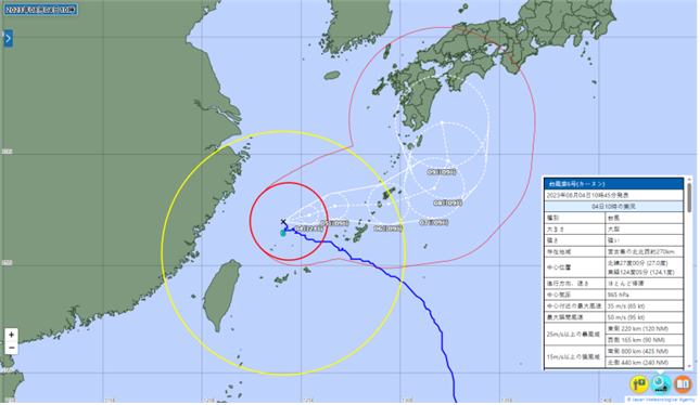 ■ 일본 기상청, 태풍 카눈 예상 진로도 (8월 4일 오전 10시 발표)