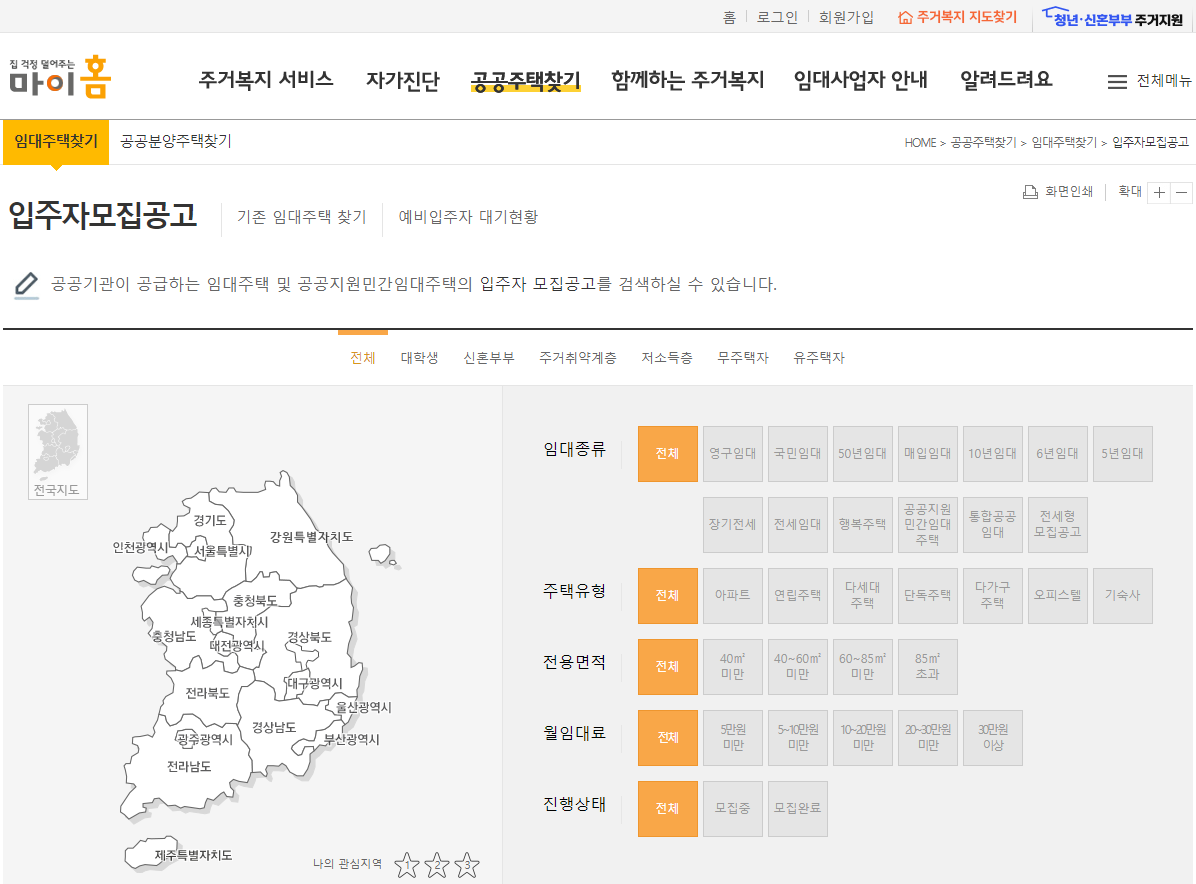 ※ 고령자복지주택은 신청을 통해서만 가능