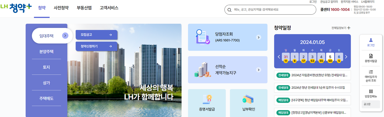 * 'LH 청약 센터(LH청약플러스)'에 청약 신청