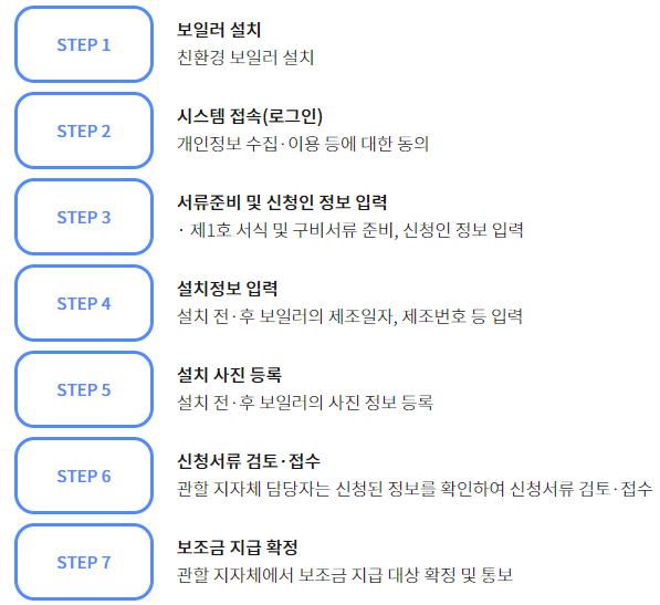 (3) 필요 서류 제출 : 주민등록증 원본 및 사본, 보일러 구입 영수증 원본, 설치 완료 사진 등