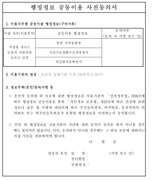 (2) 신청서 제출 : 보일러 교체 지원금 신청서를 작성하여 제출