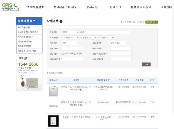 - 환경부 녹색제품정보시스템(http://www.greenproduct.go.kr/)에서 해당 제품 또는 전체 보일러 검색