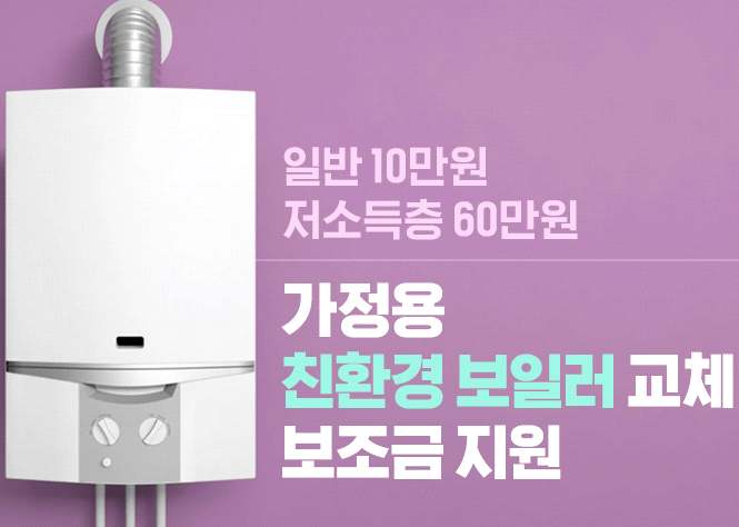 대기 오염물질인 이산화질소가 적게 나와 환경표지 인증을 받은 가정용 보일러 설치 시, 일반 가구는 10만 원, 저소득층 가구는 60만 원까지 지원하는 사업입니다.