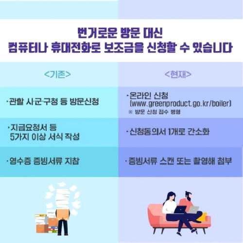 ☛ 친환경 보일러 온라인 접수 https://www.greenproduct.go.kr/boiler/main.do