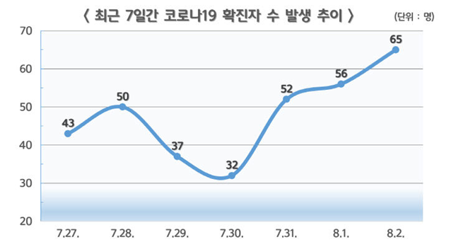 - 7월 마지막 주, 일 평균 확진자 수는 4만 4,844명을 기록