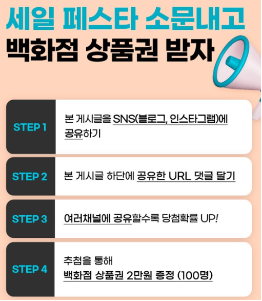 - 세일 페스타 기간 동안 1, 3, 5, 7만 원 쿠폰팩을 전 고객을 대상으로 100% 증정