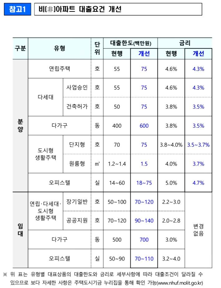 - 비(非) 아파트에 대한 주택도시기금의 대출 지원이 확대