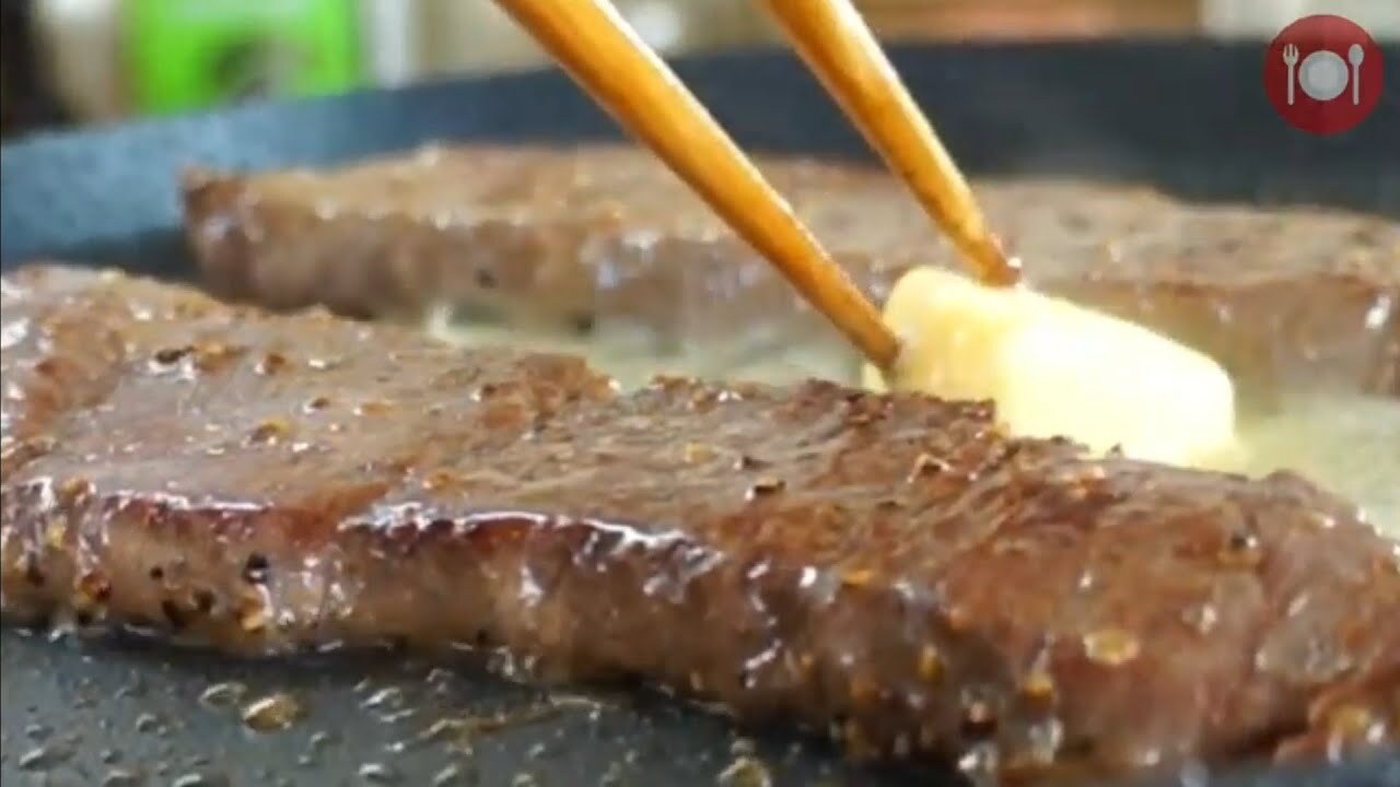 ▷ 처음 올린 고기 단면이 60% 정도 익어 육즙이 올라올 때, 한 번만 뒤집어 부드러운 맛을 유지